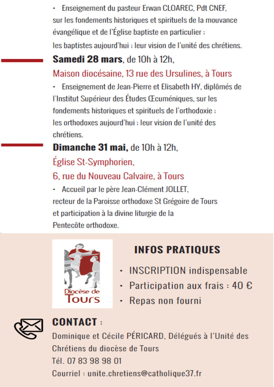FRAIS DE SESSION : 60 € par personne, pour l’ensemble des rencontres (en fonction des possibilités), à régler par chèque à l’ordre de la Pastorale familiale du diocèse de Tours