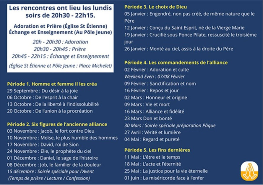 Maison diocésaine "Le Carmel", les lundis, à 20h :